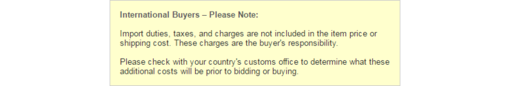 이베이가 DAP 조건에 부합하는 시장입니다. 이베이는 기본적으로 Cross Border Trade 시장이기 때문에 셀러와 바이어의 거래가 국가간의 무역을 기반으로 합니다. 이베이에 리스팅 할 때에 복사&붙여넣기 하시라는 아래의 문구를 보면 관부가세나 통관 수수료 등은 바이어의 책임이라고 명시되어 있죠.