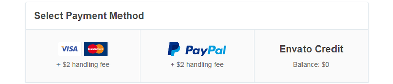 결제는 페이팔, 신용카드 결제가 가능하며 ($2의 추가 수수료 부과), Envato Credit 이라는 일종의 적립금을 충전하여 사용하면 수수료는 없습니다.
