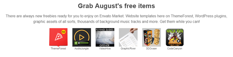 또한, 한달에 몇 가지의 상품을 무료로 제공합니다. 예를 들면 8월의 무료 아이템은 Themeforest에서 피자,음식 쇼핑몰을 위한 PSD Template를 제공하고, AudioJungle 에서는 Future Beauty 라는 음원을 제공합니다. 다른 파트에서도 마찬가지로 무료로 특정 아이템을 제공합니다. 다만 사용 전 라이선스 정책과 사용 범위를 확인하세요.