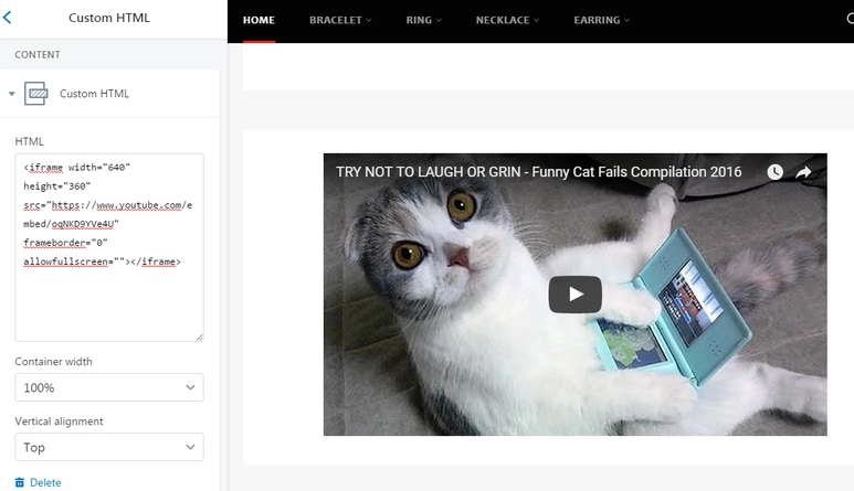 – Custom HTML : 자신이 원하는 Html 코드를 넣을 수 있습니다. Shopify를 단순하게만 사용하려면 위에 나온 Section들로도 충분합니다. 하지만 위에서 지원하지 않는 기능들을 넣고 싶을 경우 사용할 수 있습니다. 외부 컨텐츠나 동영상 등이 필요할 경우 충분히 활용할 수 있습니다.