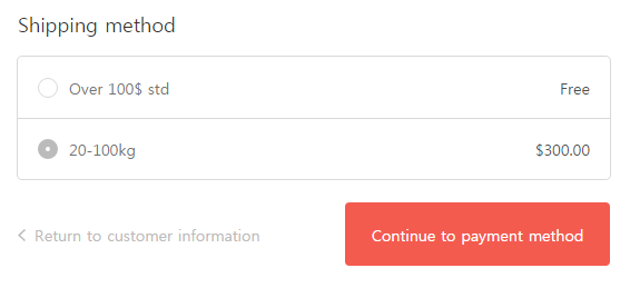 위의 배송 옵션들은 중복시엔 바이어가 선택할 수 있습니다. 예를 들면 10kg의 무게를 갖는 아이템이 있습니다. 가격은 $50으로 리스팅 했습니다. 배송설정에서 Price Based rates 에는 $100이상 무료배송으로 지정했고, Weight based rates에서는