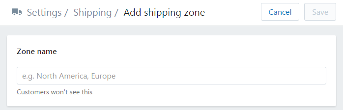 A. Zone name : 새로운 Zone을 지정하기 위해 Add shipping zone을 선택하여 새로운 Zone을 지정합니다.