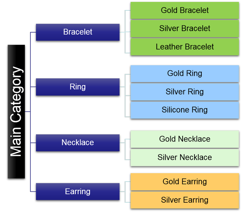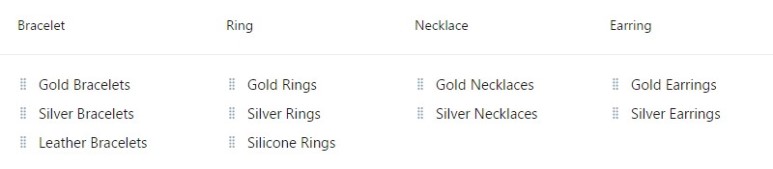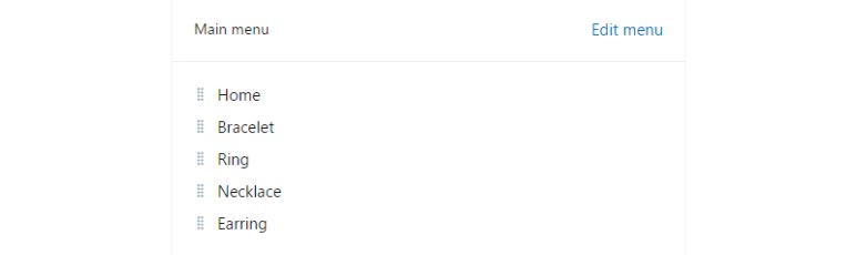 Main Menu를 위와 같이 구성했다면 메인 메뉴는 Home – Bracelet – Ring – Necklace – Earring 으로 표시됩니다.