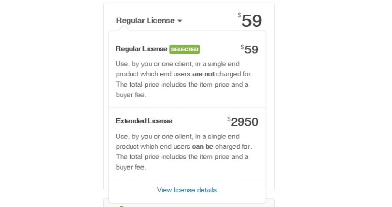 대부분의테마는구매후 6개월간 Support를제공합니다. 여기에 12개월의추가지원을받기위해서는추가요금이지불되어야합니다. 라이선스는Regular License를기본으로합니다. $29~$69정도의가격으로구매할수있는이러한경우는 1개의홈페이지에 1개의테마를구매, 사용합니다. 대부분한도메인에서는하나의테마를사용하기때문에큰지장은없고, 혹시나하위사이트 ( aaa.com 과 image.aaa.com, aaa.com/image 등)는하나의도메인에해당됩니다.