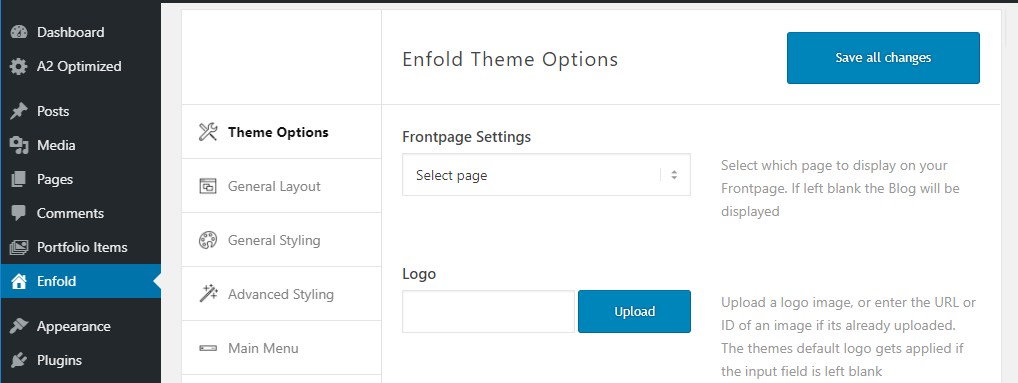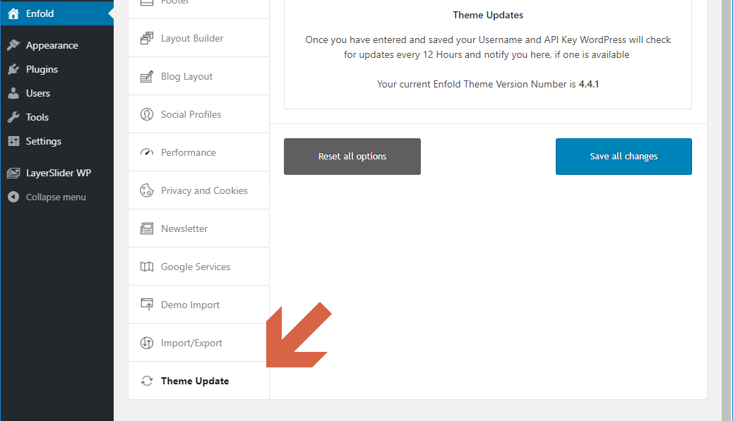 이 화면은 언제든 Enfold라는 좌측 메뉴에서 찾을 수 있습니다.