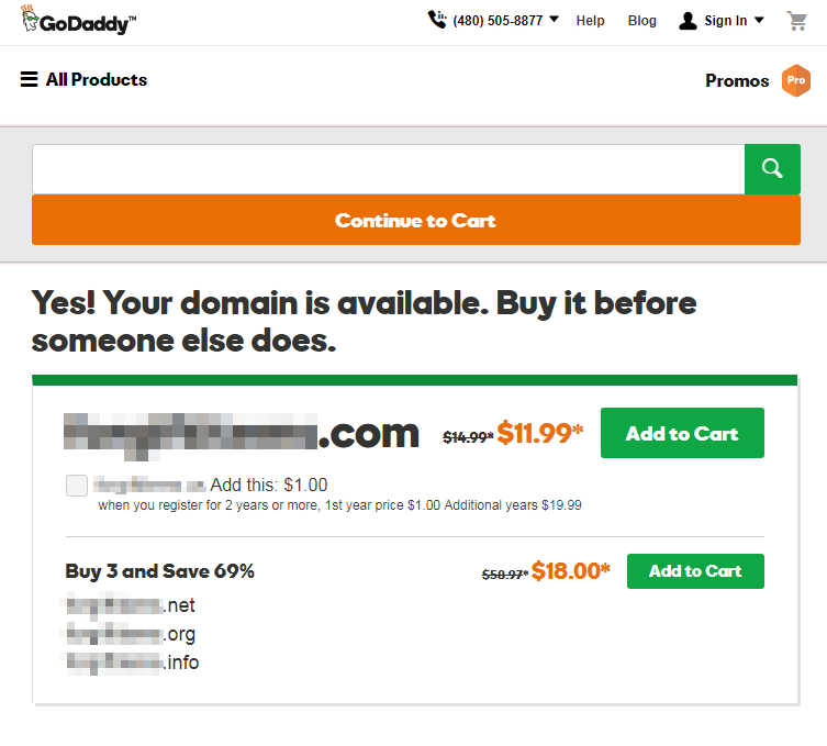 등록 가능한 도메인이 있을 경우, 등록 및 결제를 시작합니다.