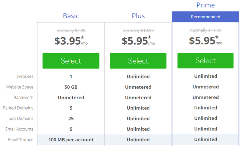 <이메일 용량과 계정 수는 무제한 제공하는 곳도 많습니다 Bluehost>
