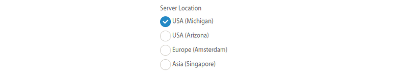 다른 항목은 No로 설정하고 선택할 수 있지만 Server Location 에 대한 부분은 몇가지 옵션 중 하나를 선택하게 됩니다. 보통 미국쪽 동/서부로 나누어진 서버가 있고 유럽, 아시아 등의 서버를 운영합니다. 자신의 쇼핑몰이 주 타겟으로 하는 위치를 지정하여 서버를 선택하면 됩니다. 대부분은 서버에 따라 가격의 차이는 없고, 만약 가격차가 있더라도 실시간 확인이 가능합니다.